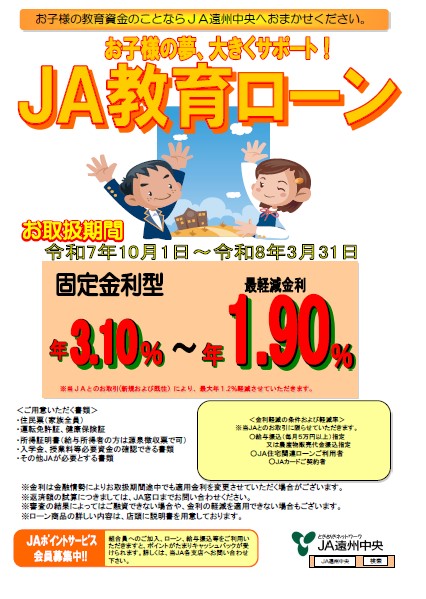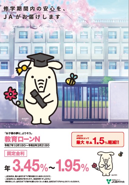 就学されるご子弟の入学金、授業料、学費、アパート家賃などにご利用いただけます。