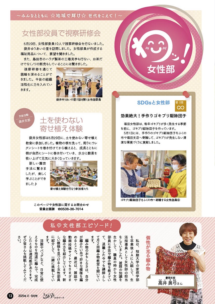 ●仲間づくり(交流会・女性大学・ミズベルの旅・家の光やお助け隊講師での活動)