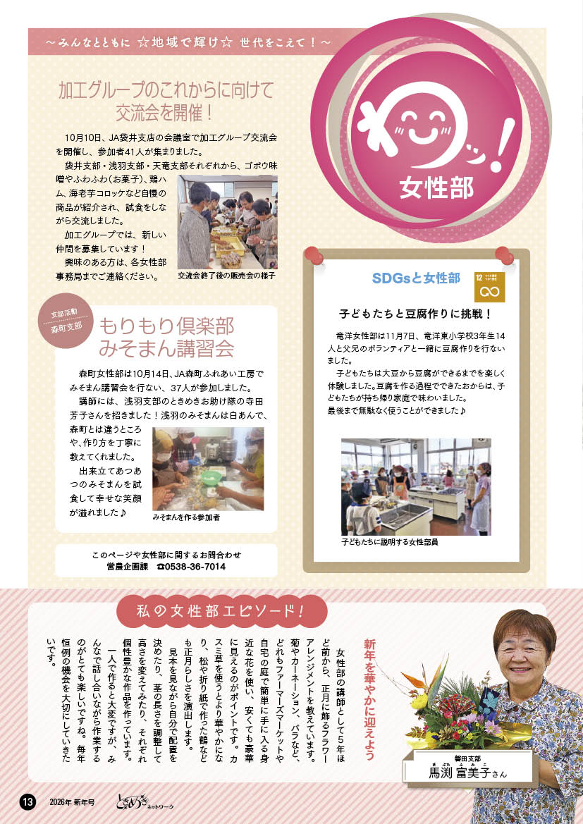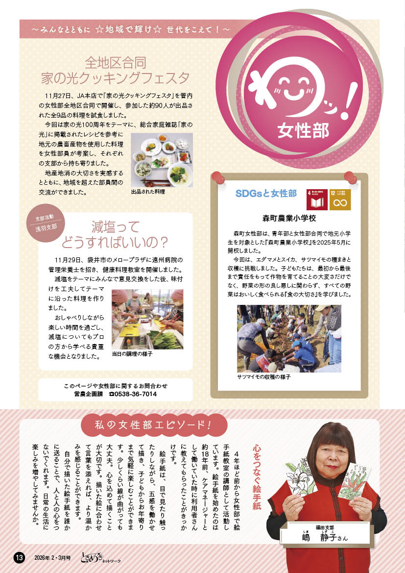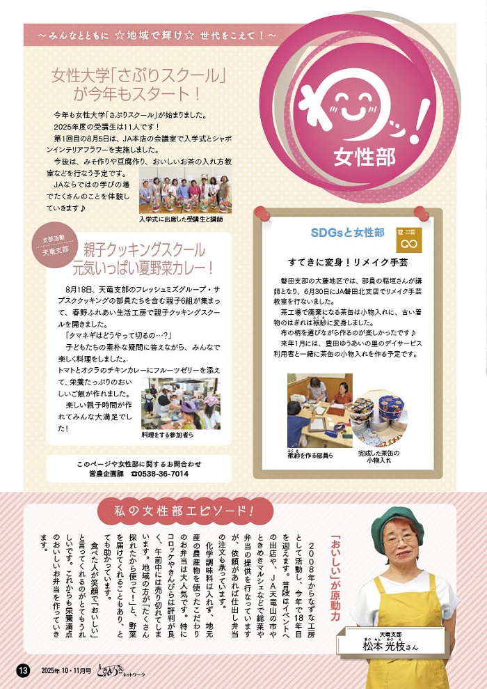 「さぷりスクール」を通して、女性部の活動を知っていただき、女性部に加入するきっかけとなるよう取り組んでいます。