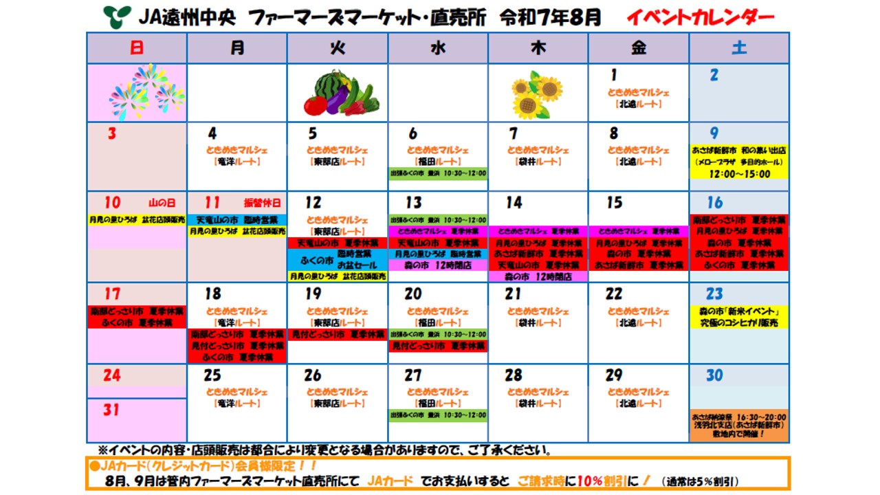 8月のFM・直売所&移動販売車「ときめきマルシェ」情報