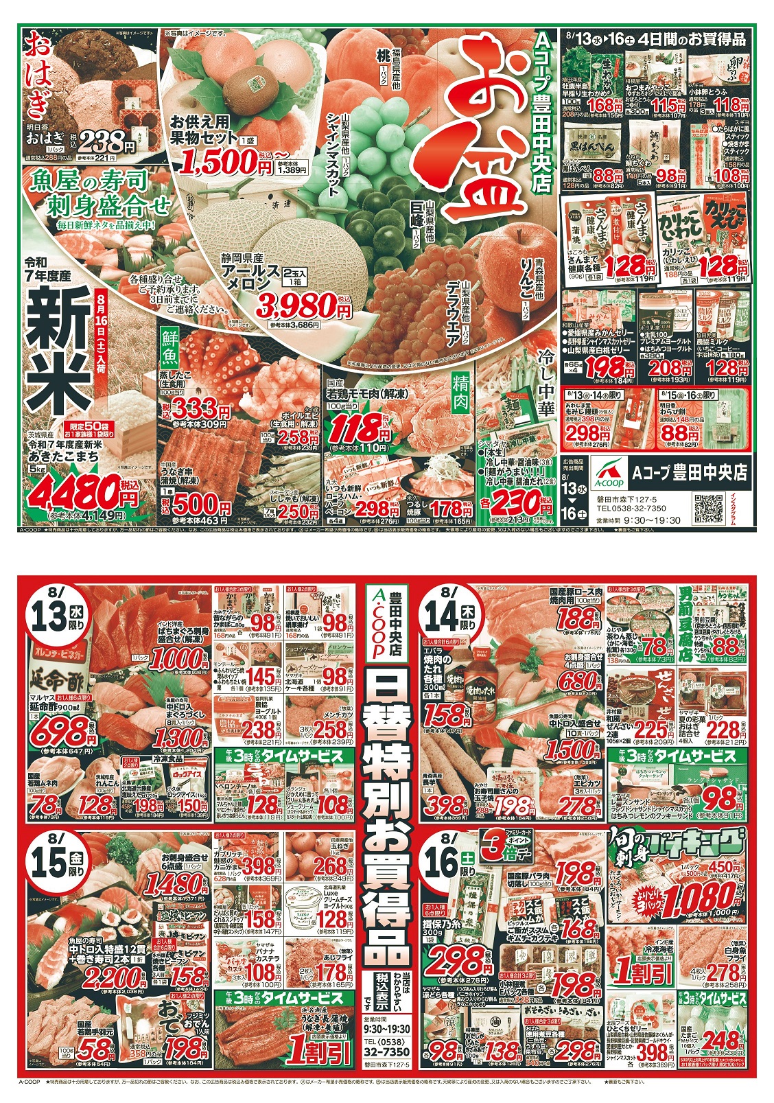 お盆も元気に営業中!Aコープ豊田中央店をの御利用お待ちしています!!