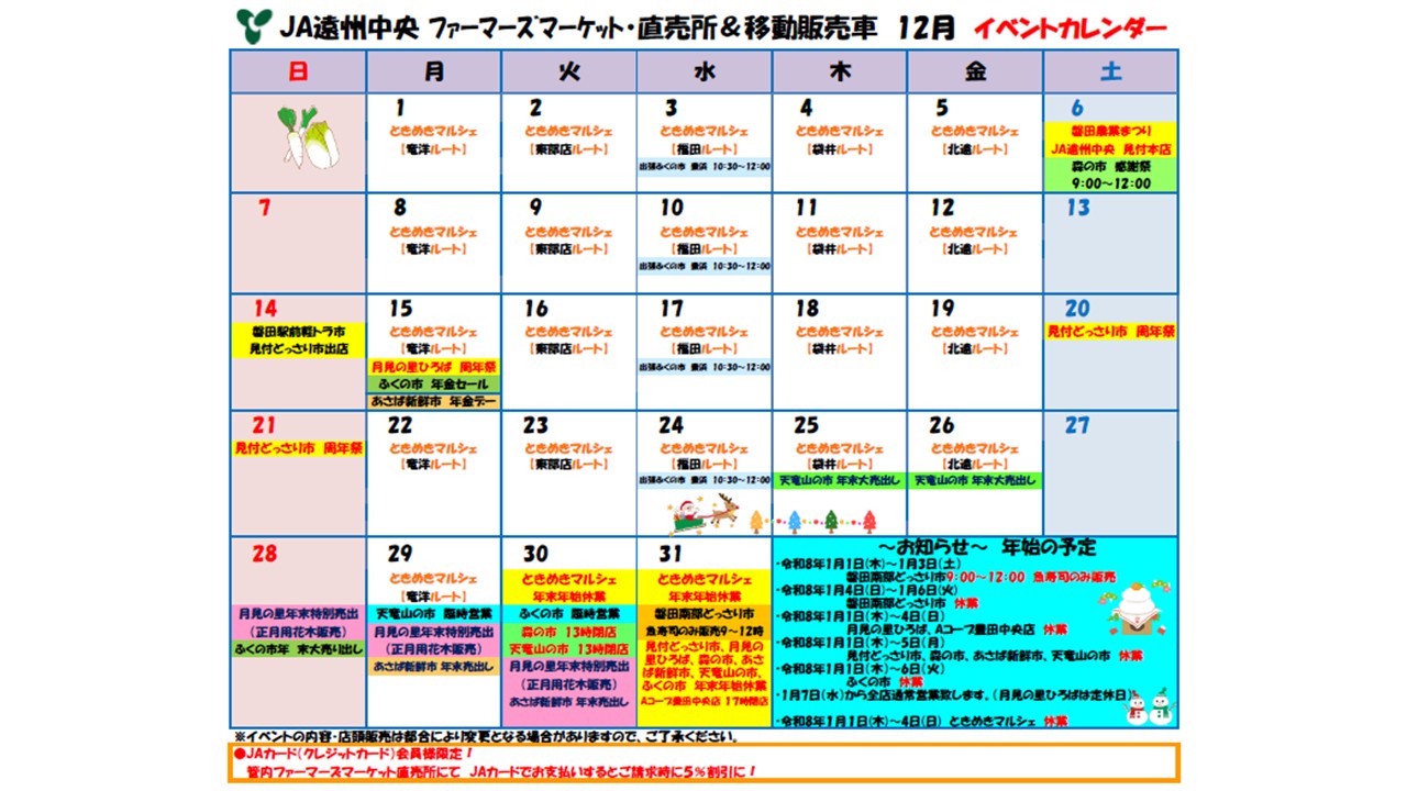 12月のFM・直売所&移動販売車「ときめきマルシェ」情報